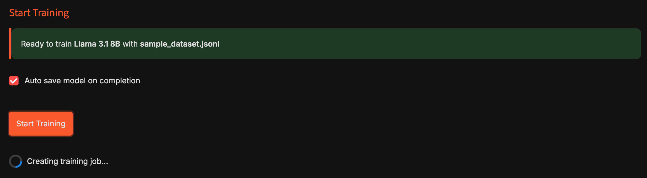 4. Click "Start Training" — That's it.