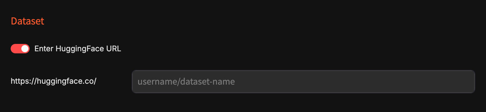 2. Upload dataset (JSONL file) OR Provide a HuggingFace URL.